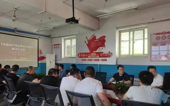 为教育引导党员干部学纪、知纪、明纪、守纪。近日,山焦西山屯兰矿通风区党总支组织开展党纪学习教育专题党课,所属党支部书记及党员代表参加。